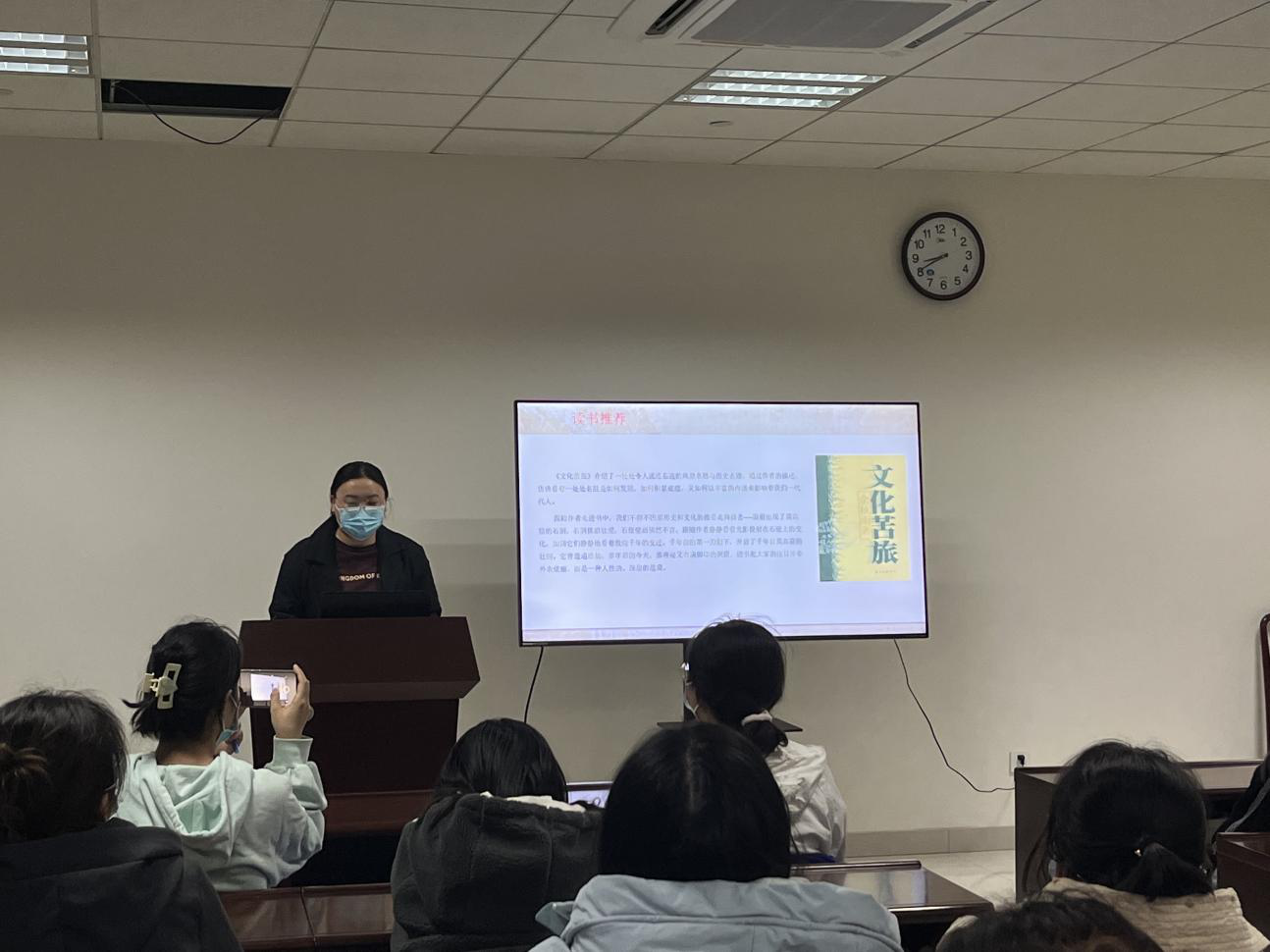 读书分享会上,内蒙古自治区妇幼保健院2021级研究生刘淑媚分享了《文化苦旅》一书的内容,她从“如梦起点”“中国之旅”“世界之旅”“人生之旅”四个部分讲起,带领大家领略了中国的大好河山,但更重要是是展示了中国文人艰难的心路历程以及文化的走向;中医临床医学院2021级研究生李博分享了“股神”之子彼得·巴菲特心灵成长之书——《做你自己》,她通过这本书,告诉大家,唯有“做你自己”才能永远怀抱热情,拥有迈向成功所需要的一切意志、胆识和决心。