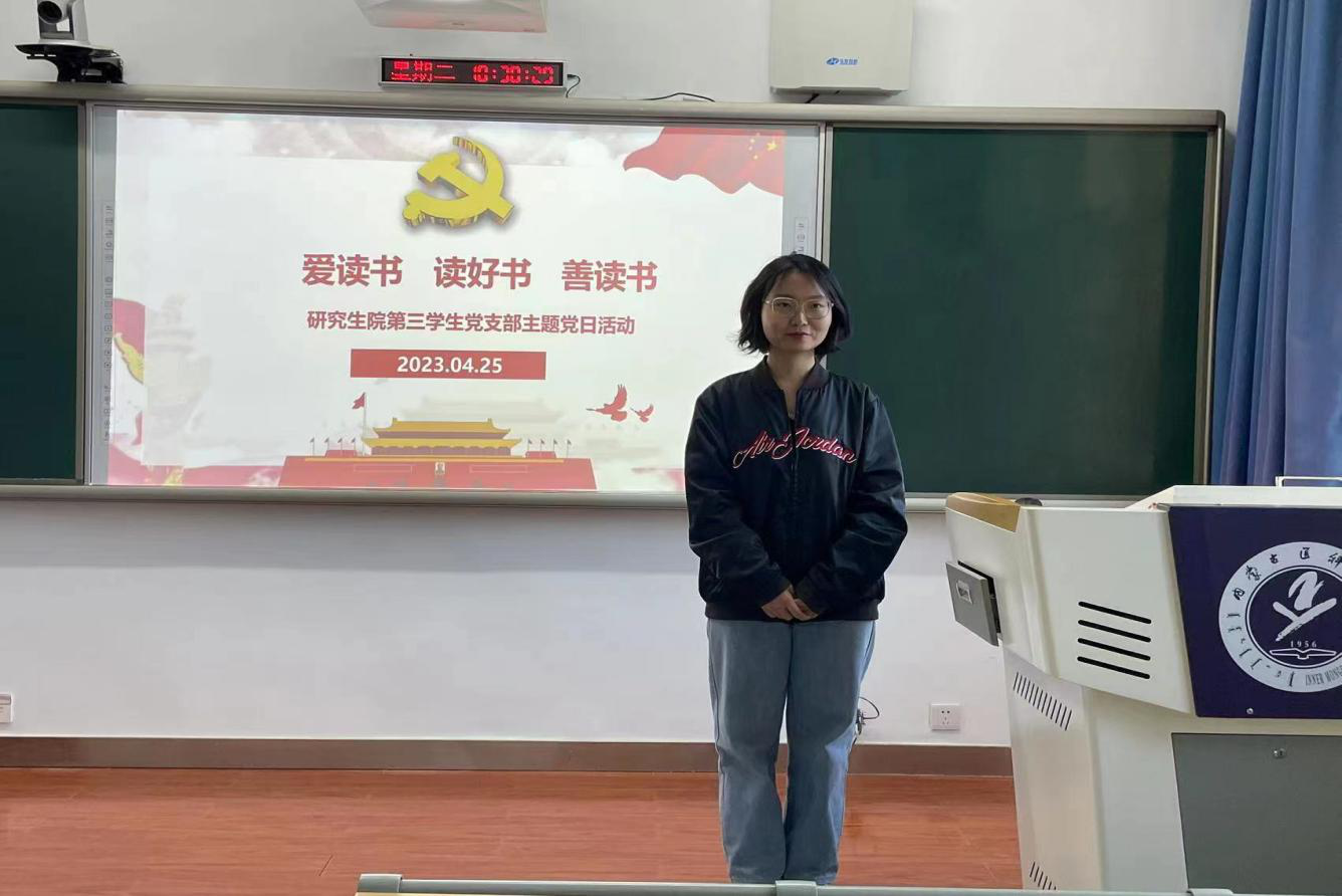 为建设学习型党组织,树立良好阅读风气,共同营造爱读书、读好书、善读书的文化氛围。2023年4月25日,研究生院第三学生党支部新华校区图书馆104教室、内蒙古自治区妇幼保健院教学楼509组织开展了“爱读书 读好书 善读书”主题党日活动。党支部全体党员、积极分子参加了本次活动。