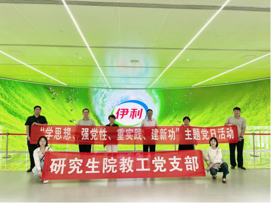 凝心铸魂跟党走,筑牢根本向复兴。为坚持用马克思主义中国化时代化最新成果武装头脑、指导实践、推动工作,进一步开展好学习贯彻习近平新时代中国特色社会主义思想主题教育,6月9日研究生院教工党支部组织全体教工党员到伊利健康谷参观。