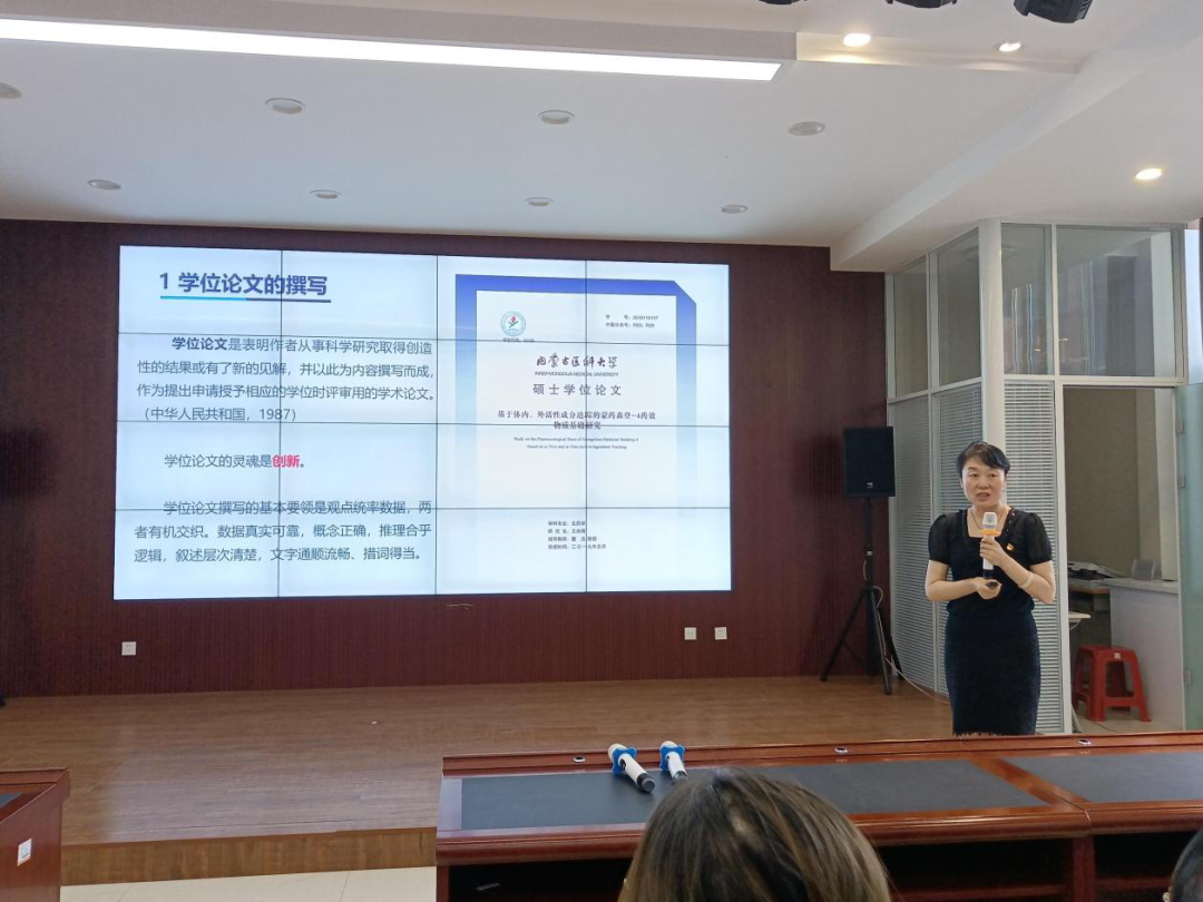 此次活动邀请内蒙古医科大学科研处处长、博士生导师、国家自然科学基金项目评审专家、中华中医药学会中药化学分会常务委员、副秘书长董玉教授做了题为“提升学位论文的创新性——以中、蒙药药效物质与质量控制为例”主题讲座。