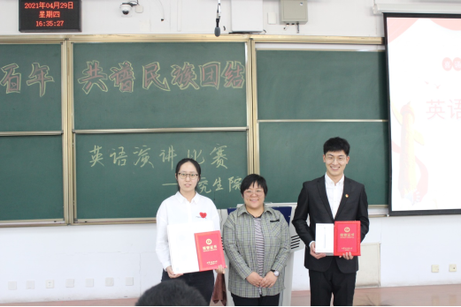 为庆祝中国共产党成立100周年,并为西北地区第七届研究生英语演讲邀请赛选拔参赛选手,4月29日下午,研究生英语演讲比赛决赛在金山校区北楼104举行。比赛邀请到外国语学院朱午静老师、郭明辉老师、乌日罕老师担任评委。研究生院党委副书记(副院长)武建军老师,学工办潘乐鸯老师、马辉老师作为嘉宾出席本次大赛。
