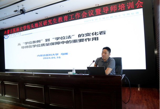为进一步贯彻落实习近平总书记对研究生教育做出的重要指示批示,加强各临床医学院研究生导师队伍建设,规范研究生培养流程,推进基地同质化建设走深走实。2024年5月16日,由内蒙古医科大学包头临床医学院牵头主办的内蒙古医科大学包头地区研究生教育工作会议暨导师培训会成功举办。内蒙古医科大学研究生院院长师建平、副院长李刚;内蒙古医科大学包头临床医学院委副书记、院长梁鲁,副院长姜长春、张玲;第三临床医学院党委副书记傅冠峰;第四附属医院副院长缪羽、陈晓飞、高小平、王宏远、赵峰出席了会议。