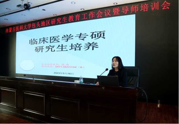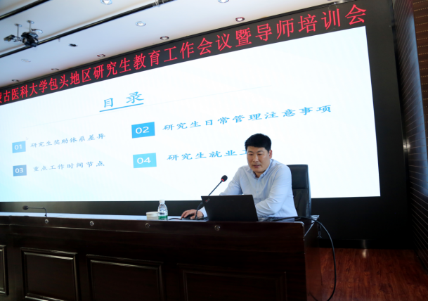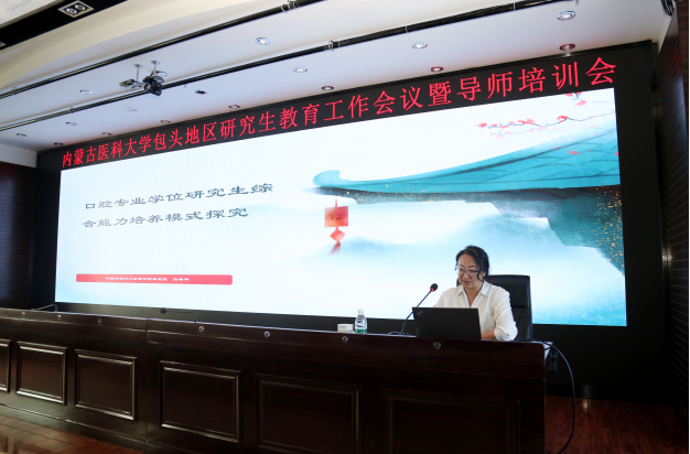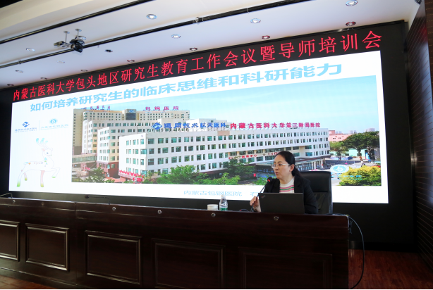 会议各环节分别由包头临床医学院副院长姜长春、第三临床医学院党委副书记傅冠峰、第四附属医院副院长缪羽、包头临床医学院科技教育科主任李娜及第三临床医学院教学部部长李强主持。包头临床医学院、第三临床医学院及第四附属医院全体研究生导师参加了本次培训。