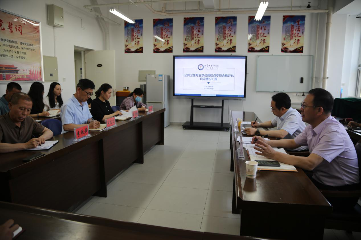 公共卫生学院院长王学梅介绍了公共卫生专业学位授权点目前整体的办学情况;按照合格性评估体系的要求,对迎接评估的准备情况、自评报告进行了详细汇报,对存在的问题进行了梳理总结。