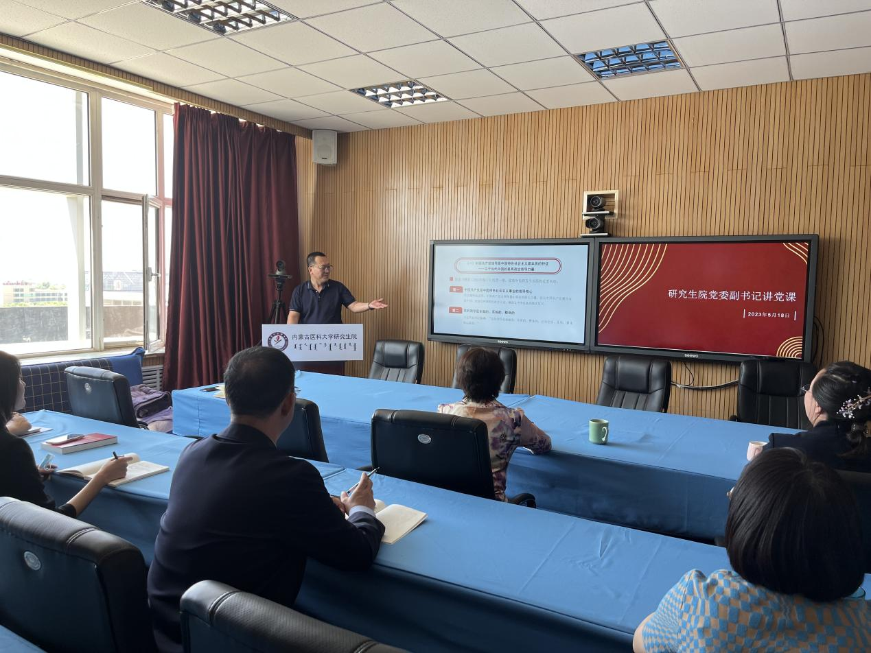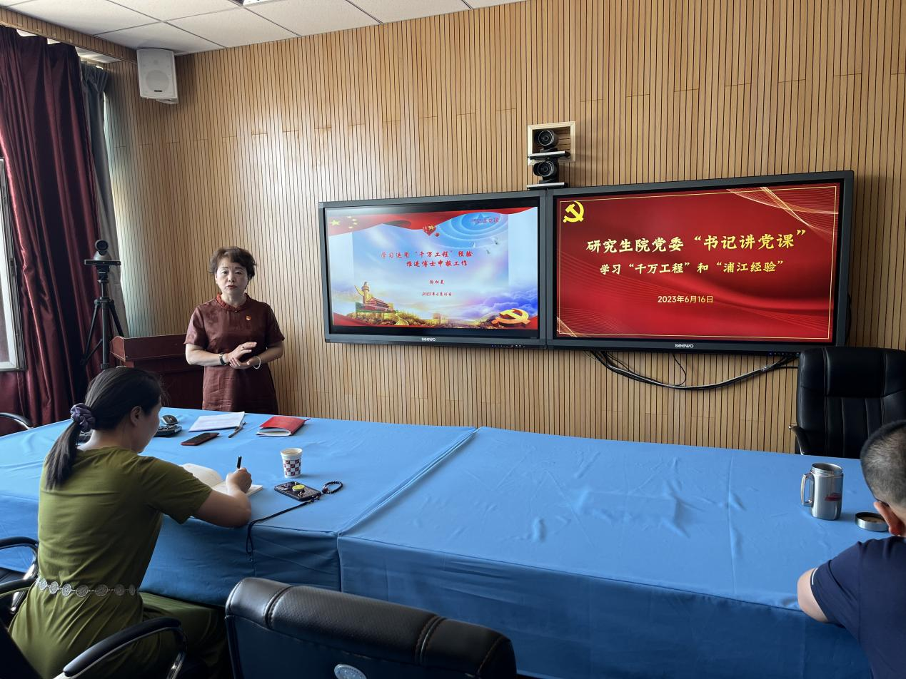 在开展主题教育之际,研究生院党委班子成员带头学习实践,积极做到“学思想、强党性、重实践、建新功”。为了提高党课在主题教育中所发挥积极作用,研究生院党委统筹安排党课内容和时间,精心组织具体备课和个人自学,力求学深讲透,讲出特色,讲出实效。